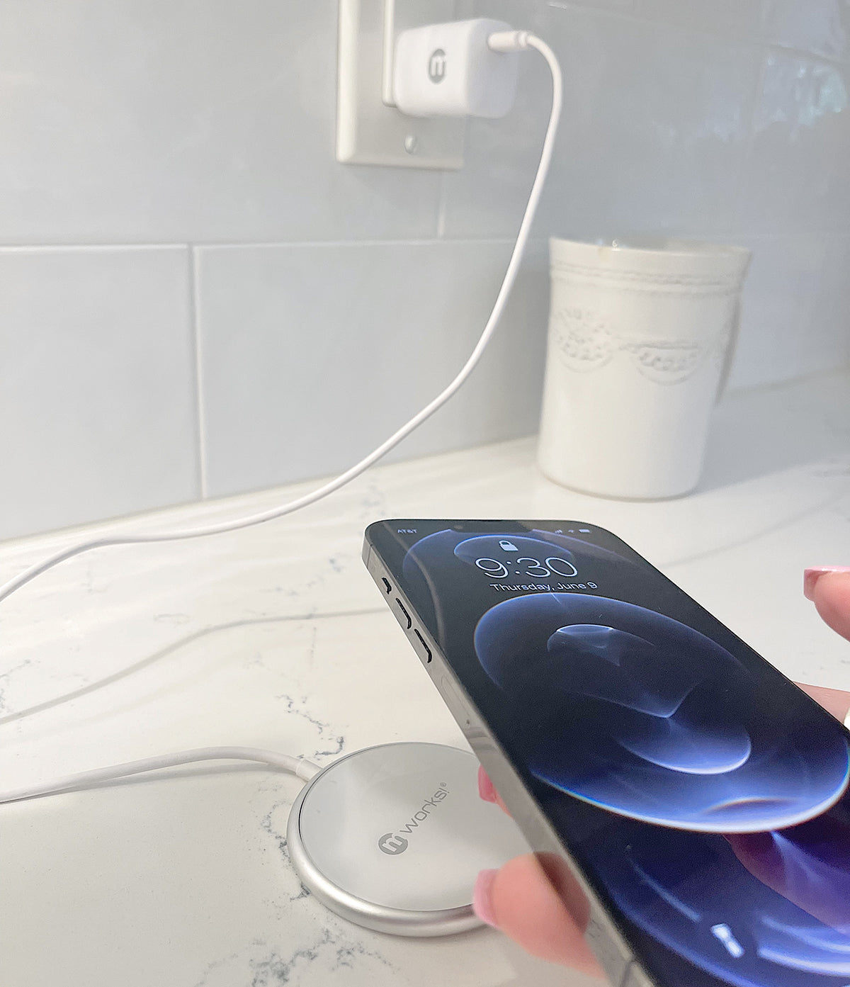 Just snap your phone onto the magnet and watch the magic happen! mWorks! 15W Magnet Wireless Charger is slim, compact, and scratch resistant. Our Wireless charger is designed with a built-in 6ft, type-C cable. The magnet is compatible with iPhone 8 and higher as well as Samsung 7 and higher.