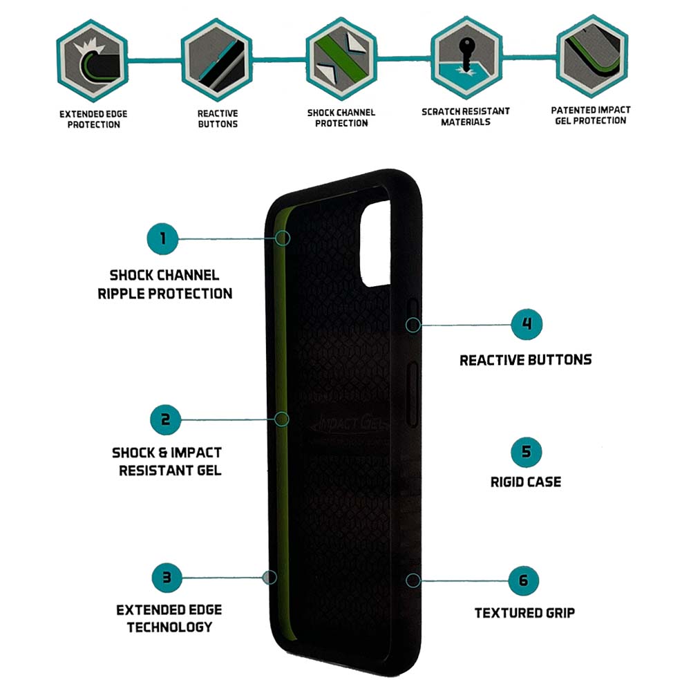 Shock Channels: Gel ripples form in the corners to provide an extra layer of impact absorbent protection and impact dispersion. These "shock channels" create gel layers in critical locations of the phone case and a better form fit for your phone.